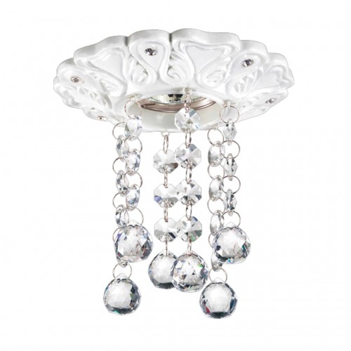 белое основание с декоративными хрустальными вставками, прозрачные хрустальные подвески